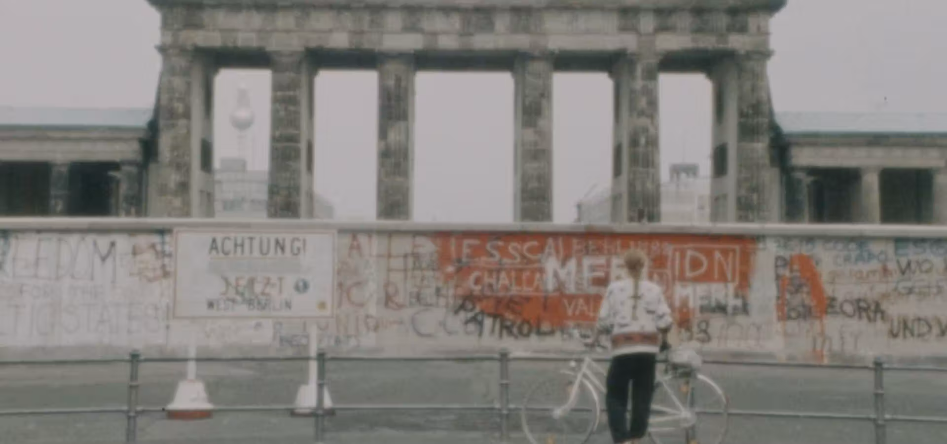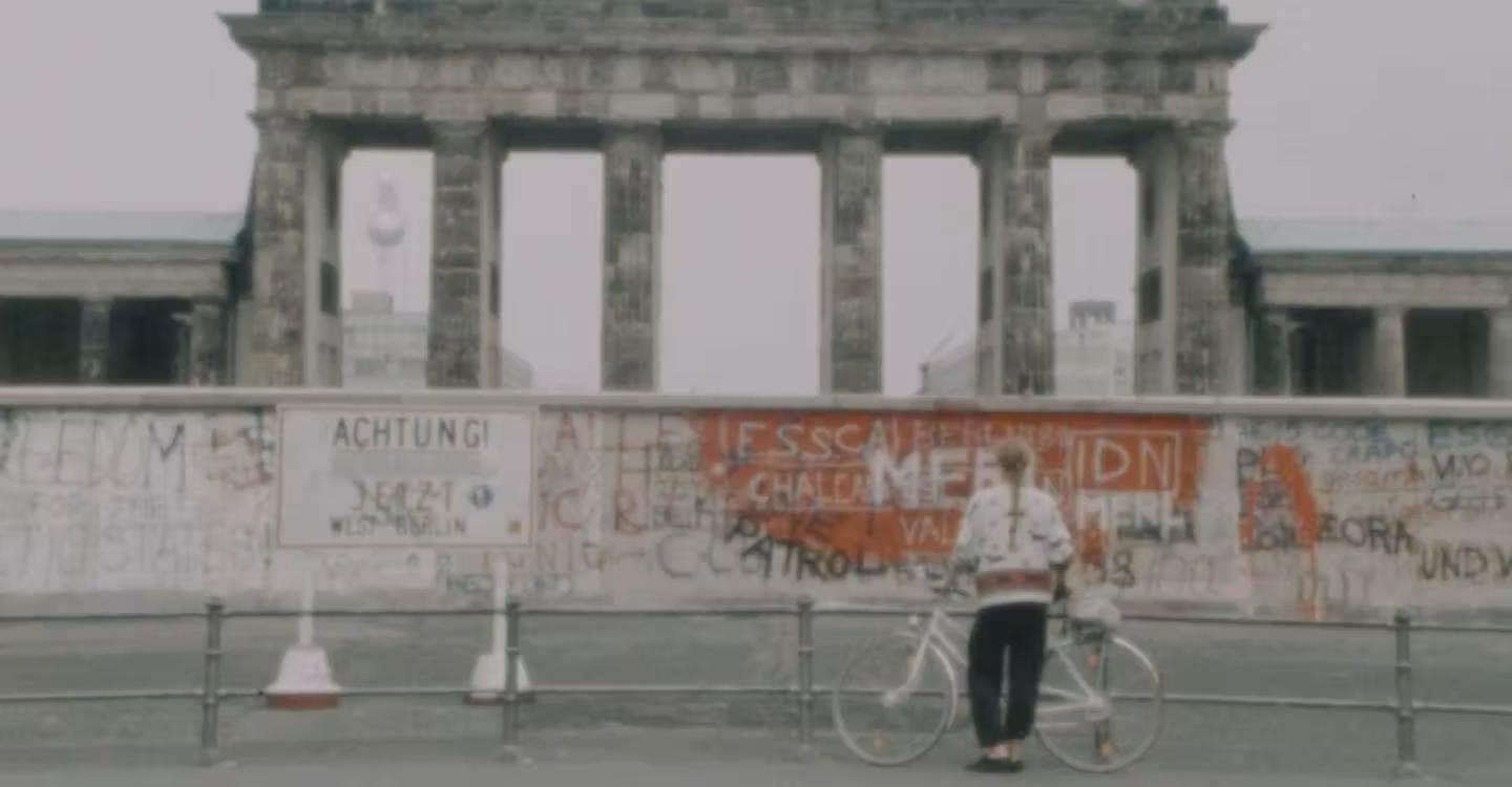 In 1988, Tilda Swinton toured round the Berlin Wall on a bicycle - starting and ending at the Brandenburg Gate - accompanied by filmmaker Cynthia Beatt. As Swinton travels through fields and historic neighborhoods, past lakes and massive concrete apartment buildings, the Wall is a constant presence.