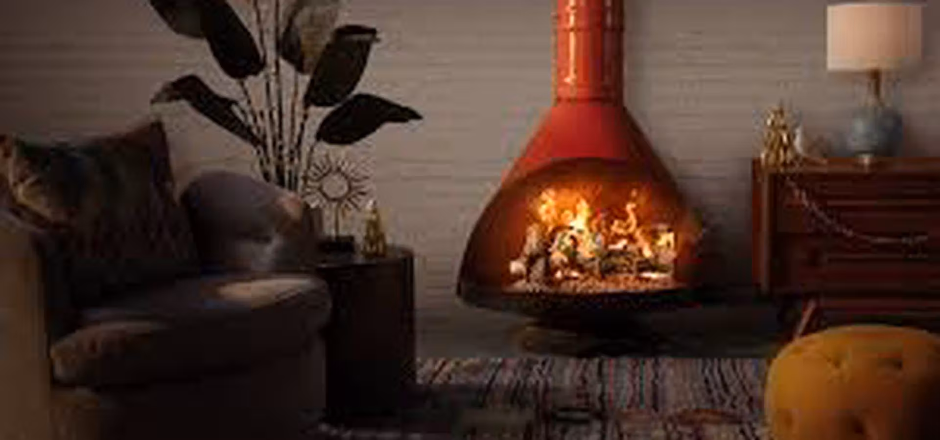 Líneas pulcras, colores llamativos y el resplandor festivo de una chimenea de estilo retro. Disfruta de las fiestas en un entorno acogedor y muy vintage.