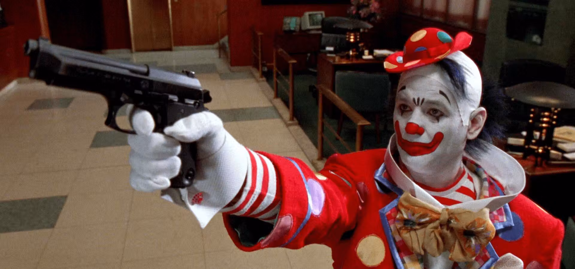 With the aid of his girlfriend, Phyllis Potter, and best friend, Loomis, Grimm enters a Manhattan bank dressed as a clown, creates a hostage situation and executes a flawless robbery. The only thing left for the trio to do is make their getaway out of the city and to the airport. It sounds simple enough, but it seems that fate deserts them immediately after the bank heist. One mishap after another conspires to keep these robbers from reaching freedom.