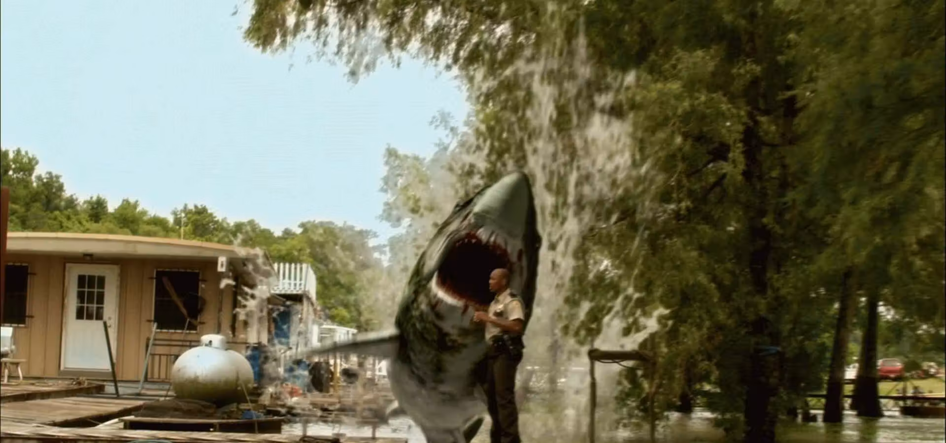Open on gorgeous swamplands of the Atchafalaya Basin in the summer. Lots of beautiful teens are at the beach the weekend before Gator Fest. That night an animal smuggling deal goes wrong and a large sea creature escapes into a swampy backwoods river. At the McDaniel's "Gator Shack" restaurant, a local, Jackson is drunk, and gets mangled to bits. The town sheriff blames the carnage on the McDaniel's "escaped" pack of gators and tries hauling them off to jail. Rachel McDaniel, head of the family, claims to have seen the fin of a shark! Rachel and her family, along with the help of a mysterious stranger, Charlie, take on the Swampshark and the law to clear their names, save Rachel's kid sister Krystal and prevent the unwitting folks at the upcoming Gator Fest from being torn to shreds by a beast the likes of which no one has ever seen!