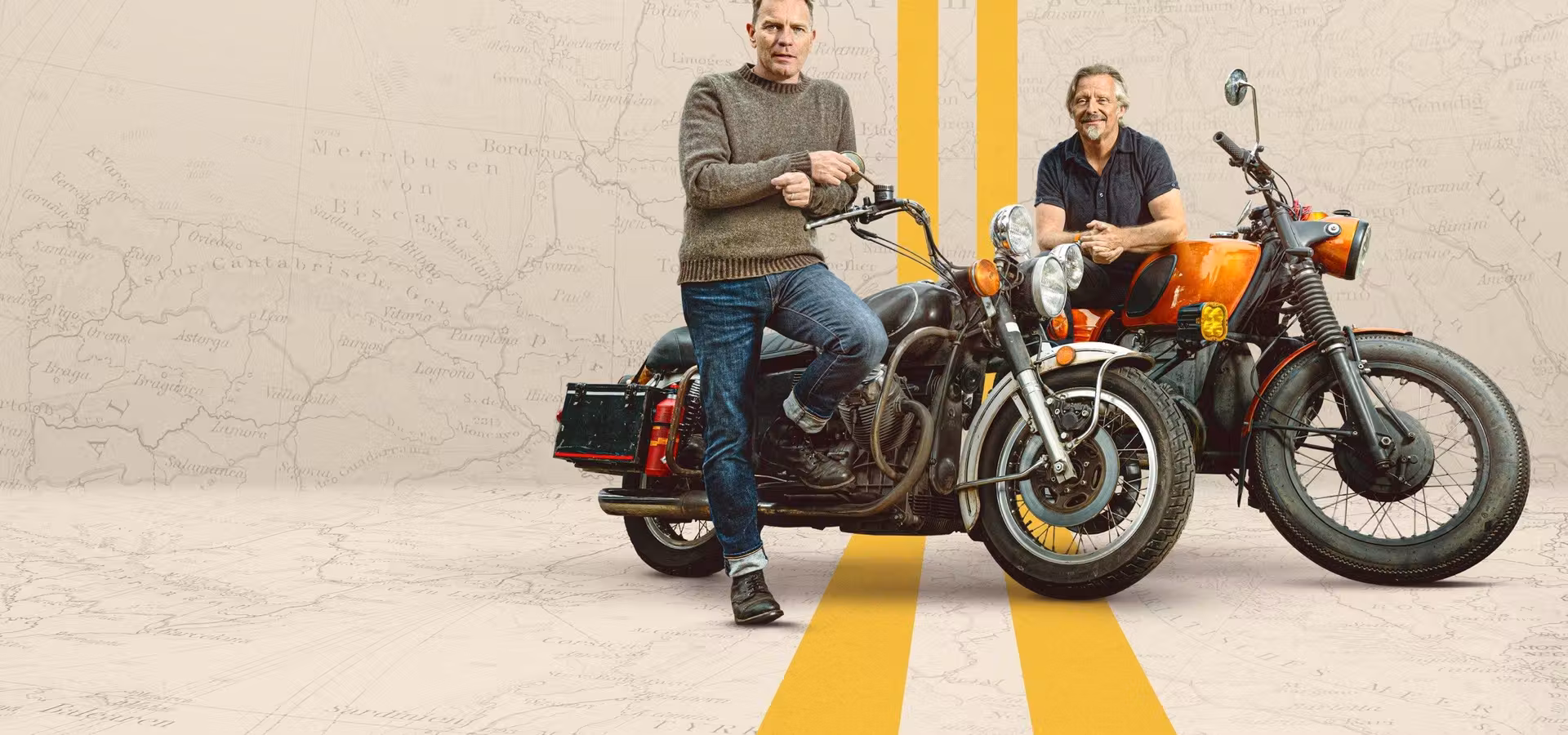 ユアン・マクレガーとチャーリー・ブアマンの親友コンビが4回目のLong Wayシリーズに挑む。今回はスコットランドのユアンの家を出て、イングランドのチャーリーの家に戻る旅。ガタのきたヴィンテージバイクで景色のいいルートを走り、ヨーロッパ17ヵ国をめぐる。
