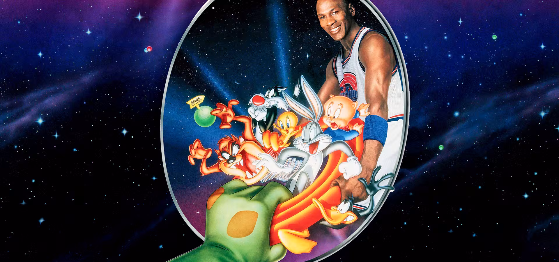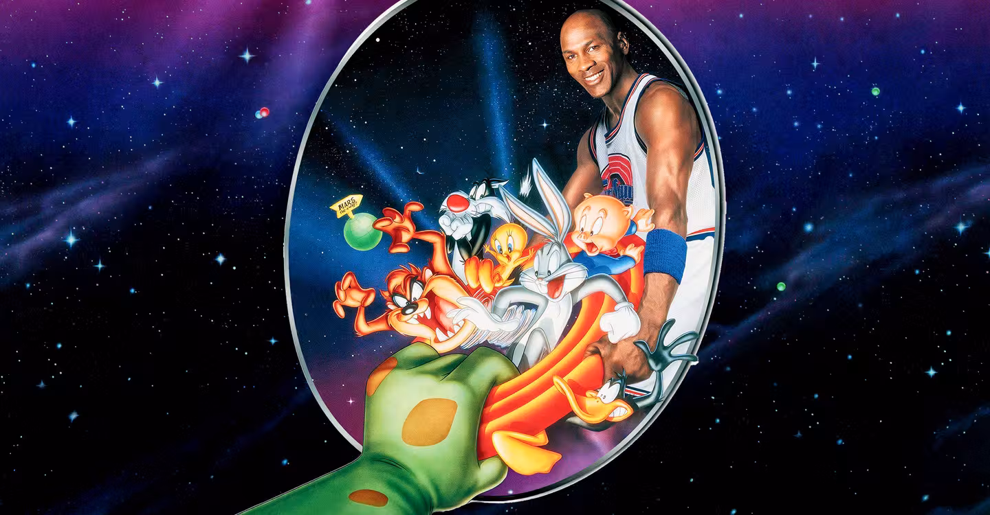 우주 깡패 집단인 너드럭스 괴물들이 잔인하고 호전적인 대장 스와크 해머의 명령으로 지구에 내려온다. 그들의 목적은 루니 튠즈를 유괴하여 모론 마운틴으로 옮겨 놓는 것이다. 스와크해머는 너드럭스 괴물들의 따분한 항성에 놀이동산을 만드려는 속셈을 갖고 있었던 것이다. 벅스 바니는 겉으론 왜소하기 짝이 없는 이들 외계인들과 농구 토너먼트 대결을 펼쳐야 한다. 루니 튠즈가 이기면 그들은 온전히 지구에 남게 되지만 만약 외계인이 이기면 벅스와 친구들은 스와크 해머의 손아귀에 들어가야 한다. 무슨 기술이든 순식간에 습득하는 너드럭스의 비밀 기술을 간파하지 못한 벅스는 왜소한 외계인들을 우습게 보고 농구시합을 제의한 것이다. 너드럭스는 찰스 버클리, 패트릭 유잉, 먹시 보거스, 레리 존슨과 숀 브레들리 같은 NBA 수퍼스타들의 농구 실력을 모두 빨아들인 후 강력하고 스피디한 몬스터 팀으로 돌변해 버린다. 뒤늦게야 적들의 실체를 알아 차린 벅스는 도움이 필요하다고 판단한다. 하지만 누굴 찾아 가야 한단말인가? 쟁쟁하던 농구 스타들이 자신들의 실력을 모두 뺏겨버린 마당에 말이다. 그런데 단 한명. 가장 '화려했던 농구스타 마이클 조던이 농구계를 떠나 야구 선수로 간신히 버티고 있지 않은가!