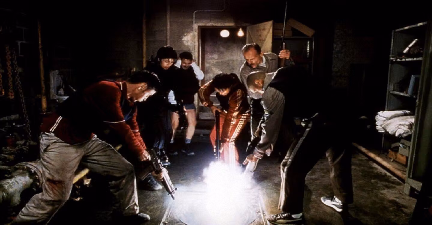 휘파람 불며 거리를 질주하는 나세르와 상티노 외 3명의 친구들은 교외의 물류창고를 털어 인생역전을 노리는 무장강도 일당. 때마침 프랑스 혁명 기념일을 맞아 군인, 경찰을 비롯 거리는 온통 축제에 빠져 있다. 경비원만 해치우고 콘테이너 하나 가득 쌓인 노트북을 싣고 나오기만 하면 '불행 끝 행복시작'. 첨단 장비와 컴퓨터 프로그래머까지 동원한 나세르 일당은 창고에 잠입, 노트북 탈취에 성공하는데... 라보리를 위시한 특수부대 요원들은 국제 매춘조직을 운영, 여성들을 납치, 감금해 인두로 번호를 매겨 세계 각국으로 팔아 넘기는 알바니아 마피아 대부 아베딘을 호송하는 임무를 부여 받는다. 특별 호송차량에 특공대원들이 몇 겹의 호위를 한 그들 일행. 그러나 마피아들이 보스 구출을 위해 쳐놓은 덫에 걸려 몰살당하기 직전, 라보리와 몇 명만이 아베딘과 함께 외곽의 창고로 피신한다. 노트북을 털고 있던 나세르 일당과 죄수 호송 중 창고로 피신 온 특수부대요원들은 서로 총을 겨누고 마주하게 되고... 서로가 아군인지 적인지 확인할 틈도 없이 빨간 불빛을 뿜어대는 마스크를 뒤집어 쓴 얼굴없는 적의 엄청난 공격을 받는다. 믿을 수 없을 정도의 화력으로 무장하고 장갑차, 불도저로 밀고 들어오는 얼굴없는 적, 이제 돈도 임무도 소용없다! 살아남기 위한 전쟁만이 있을 뿐...