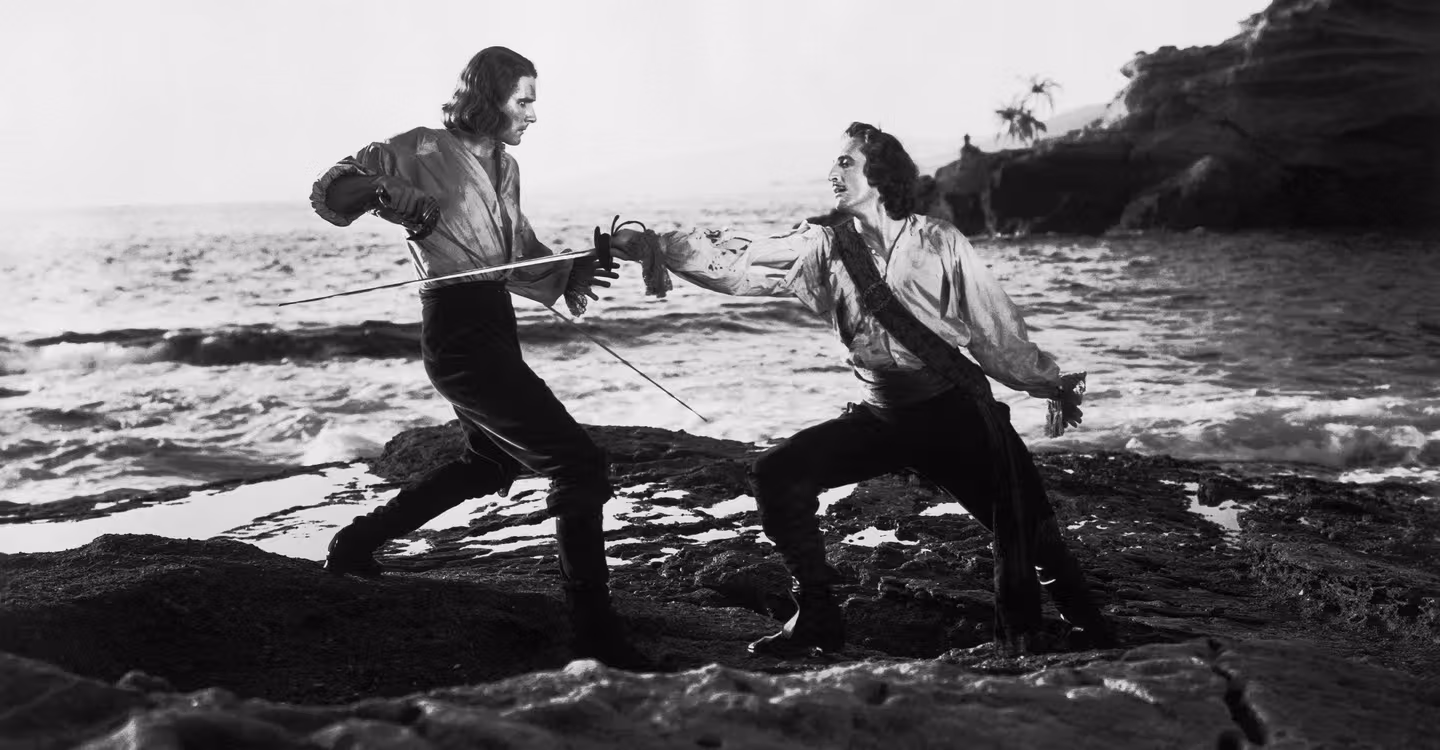 Dr. Peter Blood, unjustly convicted of treason and exiled from England, becomes a notorious pirate.