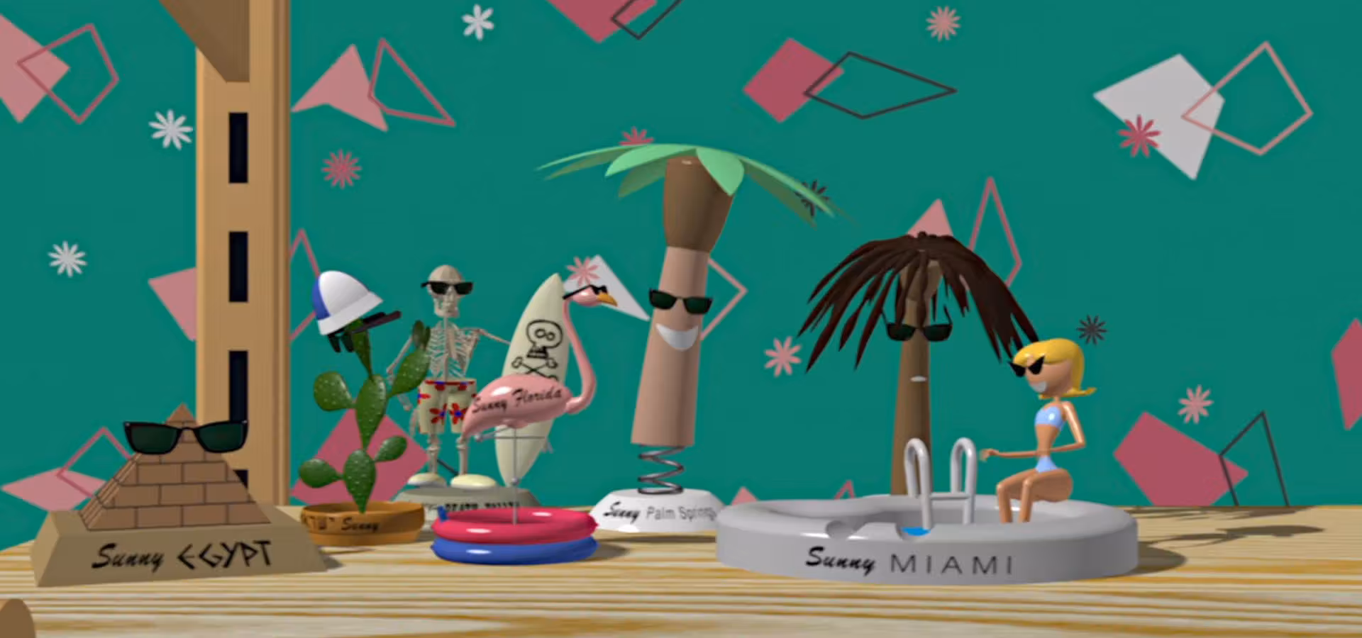 Un muñeco de nieve encerrado en un globo trata de alcanzar por todos los medios a 'Sunny Miami', una muñeca que está al otro lado de la estantería.