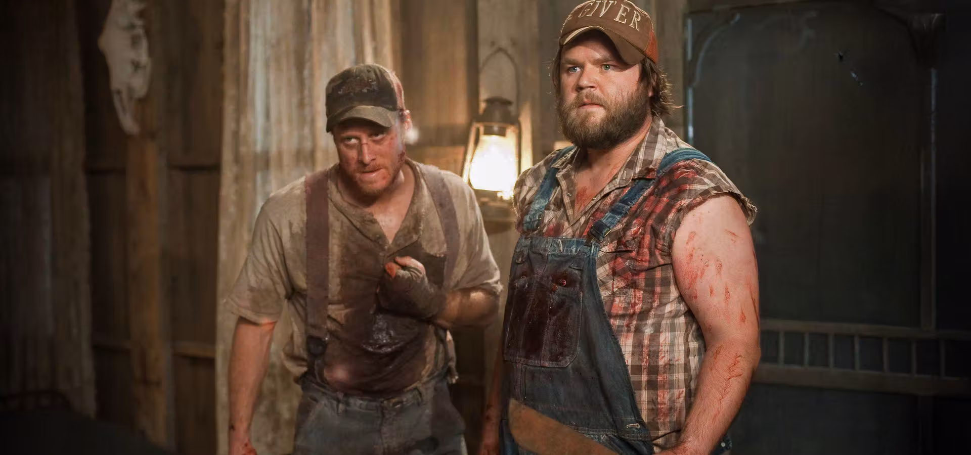 Tucker i Dale, dwaj prawdziwi „pełnokrwiści” wieśniacy, wyruszają na wymarzone wspólne wakacje. To będzie wypoczynek na bogato: luksusowy domek, wędkowanie, a także wprowadzanie do organizmu odpowiednich ilości piwa. Co prawda „wypasiony” domek to stara zdewastowana rudera w leśnej głuszy, ale przyjaciele są tak szczęśliwi, że zdają się tego nie zauważać. I wszystko byłoby cudownie, gdyby los nie postawił na ich drodze grupy szpanerskiej młodzieży z miasta. Przypadek zrządza, że nasi dwaj duzi panowie o małych rozumkach zostają uznani przez młodych ludzi za zwyrodniałych seryjnych morderców, którzy, uzbrojeni w piły łańcuchowe, czyhają na życie kolejnych ofiar. Wakacje Tuckera i Dale’a zaczynają przypominać krwawe i absurdalne łowy.