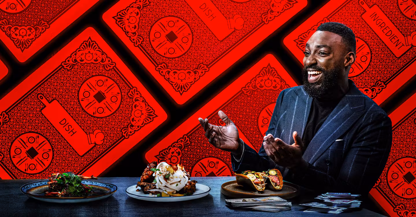 After midnight, Eric Adjepong takes over the Food Network kitchen and invites the best chefs in the country to bring $5,000 of their own money to play three hands of his late-night, underground culinary card game.