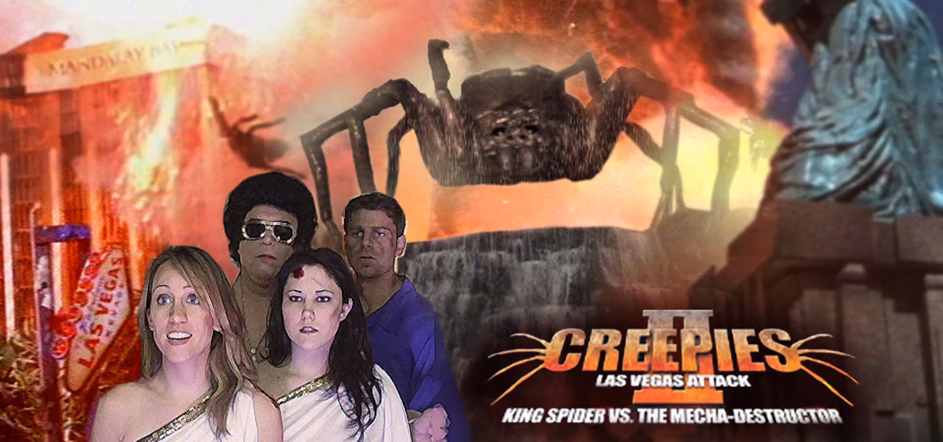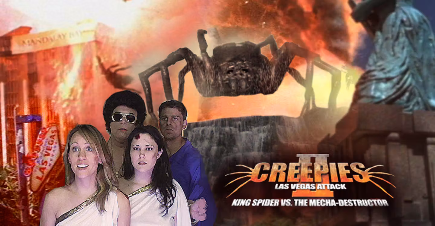 With Los Angeles in flaming ruins from a nuclear attack, solders mop up what is left of the deadly spider with a giant spider killing robot: Mecha-Destructor. Unfortunately, a terrorist escaped from the weapons base with a suit case full of the creatures. Shot down behind the Beluxor Hotel, the spiders make their way in the pyramid and up and down the strip devouring gamblers, show girls and destroying many landmarks.