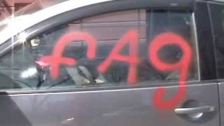 On the 11th Annual National Day of Silence, Erin Davies was victim to a hate crime in Albany, New York. Because of sporting a rainbow sticker on her VW Beetle, Erin's car was vandalized, left with the words "fag" and "u r gay" placed on the driver's side window and hood of her car. Despite initial shock and embarrassment, Erin decided to embrace what happened by leaving the graffiti on her car. She took her car, now known worldwide as the "fagbug," on a 58-day trip around the United States and Canada. Along the way, Erin discovered other, more serious hate crimes, had people attempt to remove the graffiti, and experimented with having a male drive her car. After driving the fagbug for one year, Erin decided to give her car a makeover.