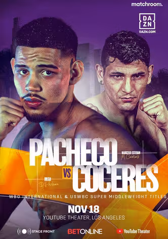 Watch Now StreamDiego Pacheco vs. Marcelo Esteban Coceres is not available for streaming.Let us notify you when you can watch it.Notify me