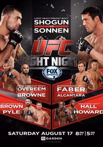 Watch Now StreamUFC Fight Night 26: Shogun vs. Sonnen is not available for streaming.Let us notify you when you can watch it.Notify me