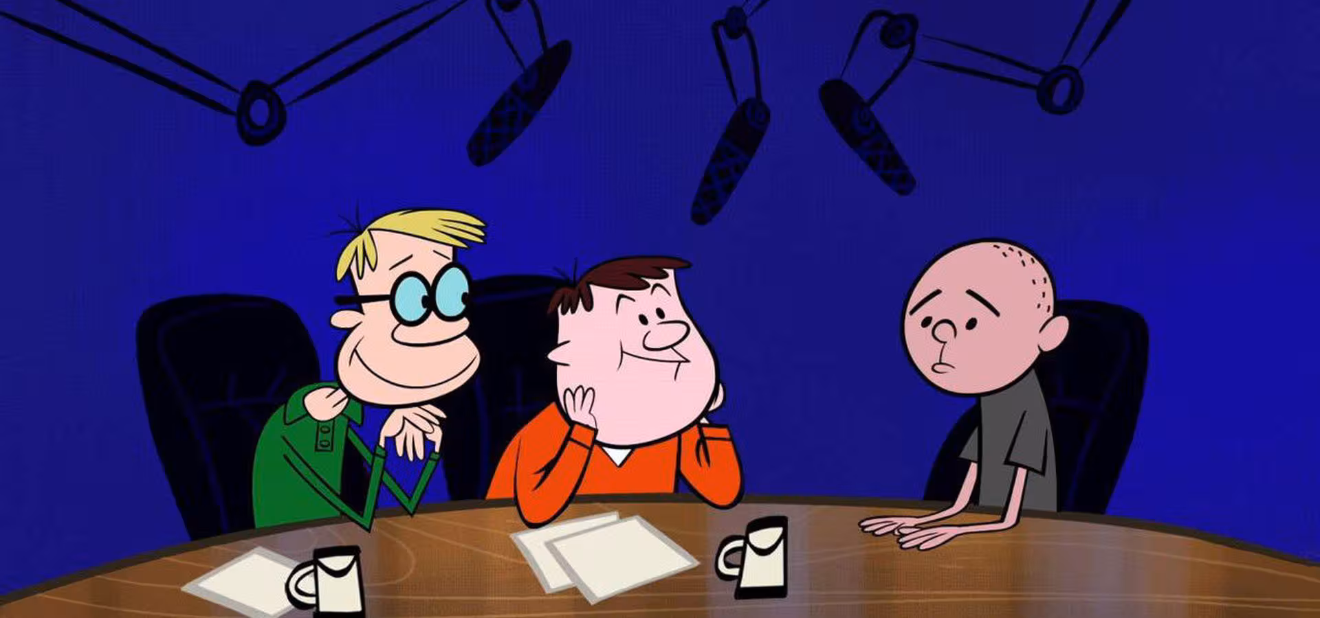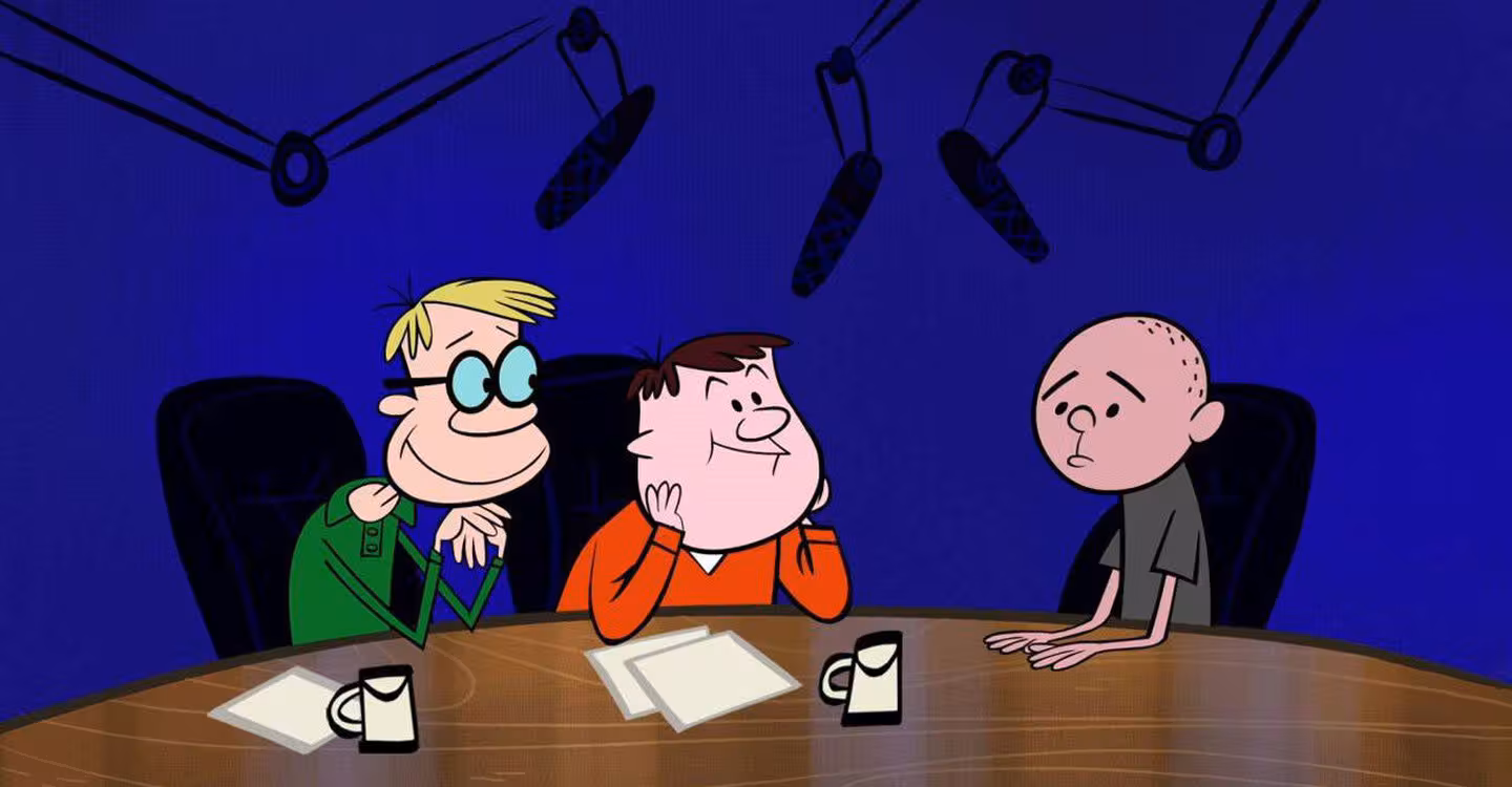 The Ricky Gervais Show is an American cartoon series produced for and broadcast by HBO and Channel 4. The series is an animated version of the popular British audio podcasts and audiobooks of the same name, which feature Ricky Gervais and Stephen Merchant, along with colleague and friend Karl Pilkington, talking about various subjects behind the microphone. The TV show consists of past audio recordings of these unscripted "pointless conversations," with animation drawn in a style similar to classic era Hanna-Barbera cartoons, presenting jokes and situations in a literal context. The animated Ricky Gervais Show has aired 39 episodes across three seasons since it premiered in 2010. There were some plans for a possible fourth season which would have used newly recorded audio, but this was shelved in June 2012. Series 3 of The Ricky Gervais Show premiered on 20 April 2012 on HBO, and on 8 May 2012 on E4.
